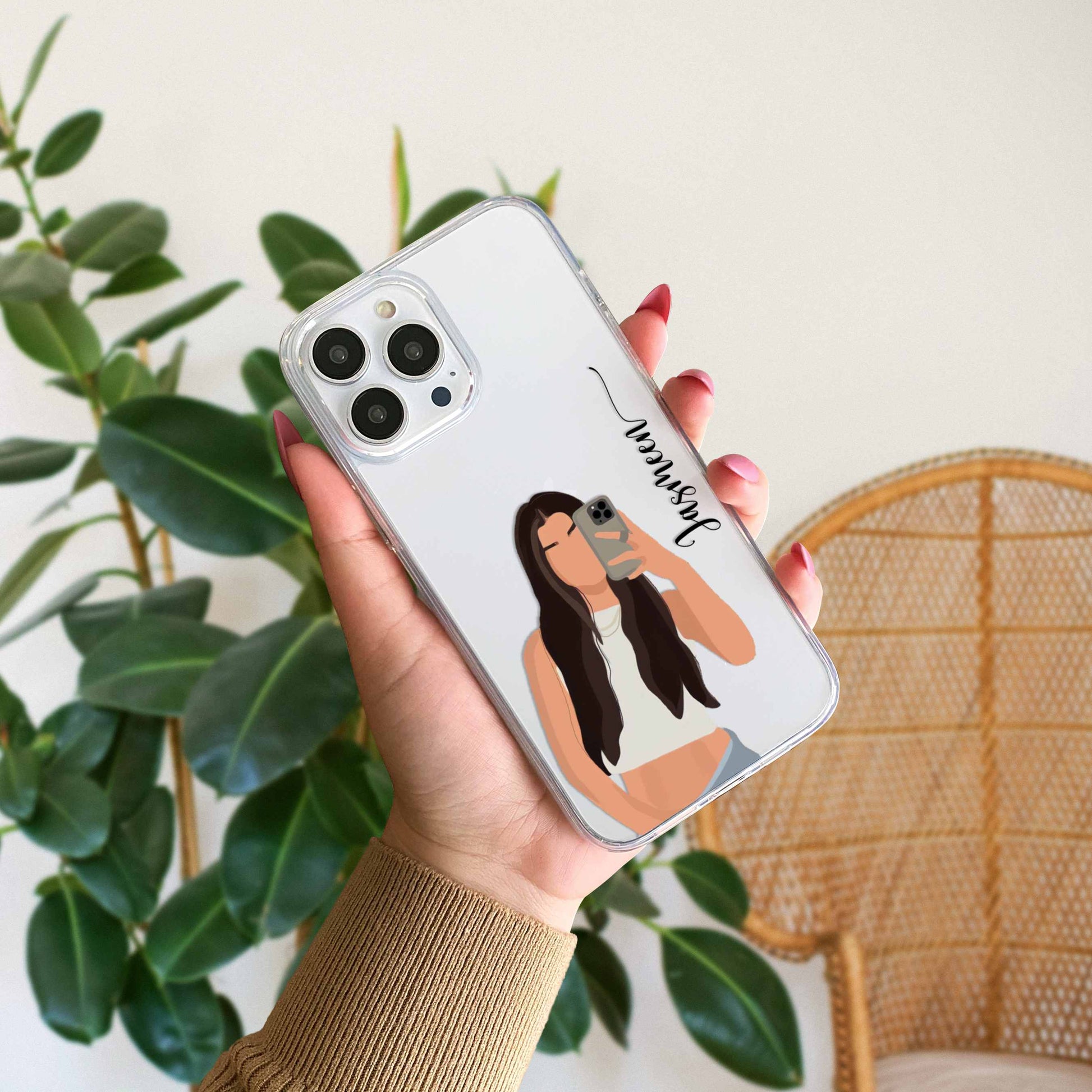 Cute Selfie Girl Customized Transparent Silicon Case Design 3