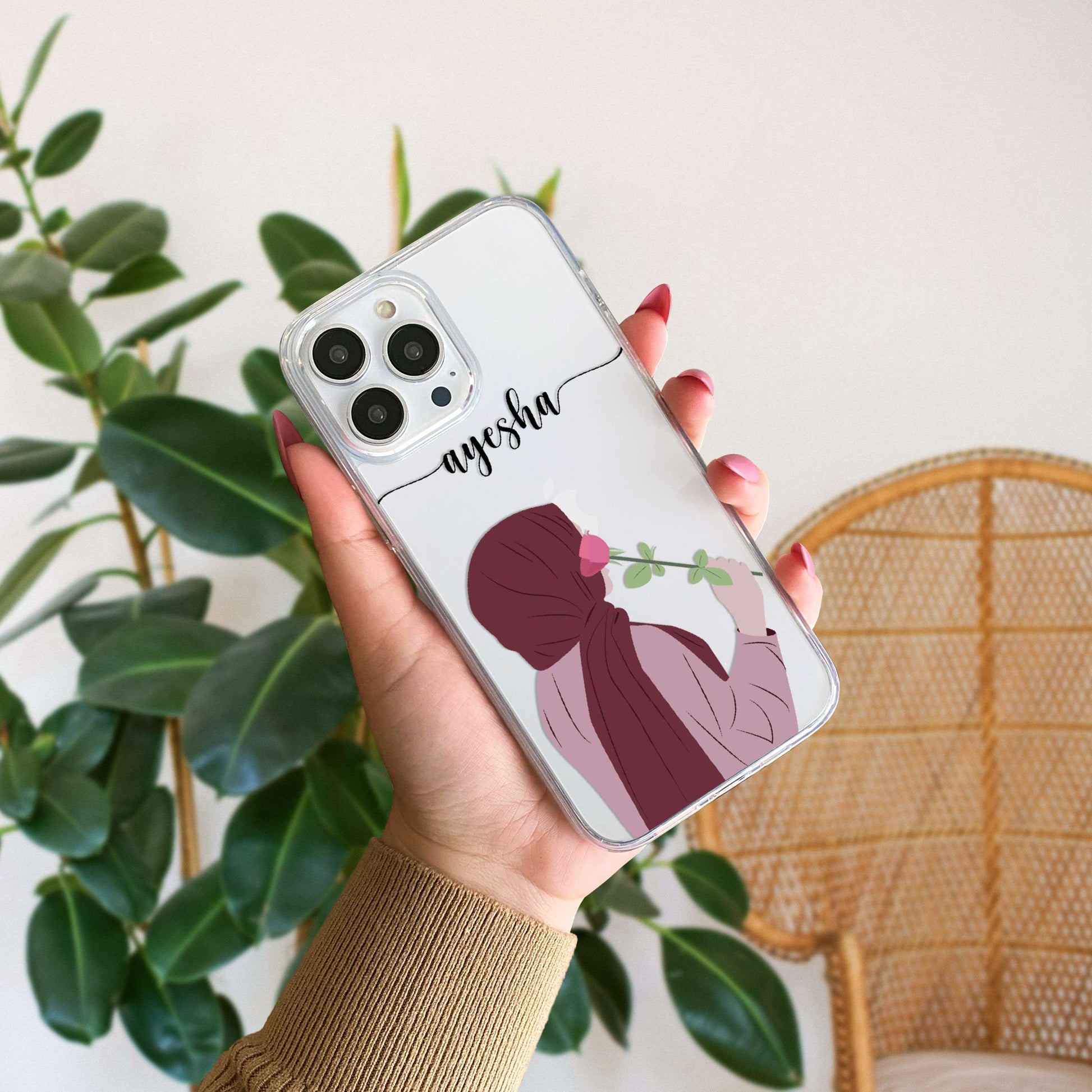 Hijab Girl Holding Flower Custom Name Transparent Silicone Phone Case Design 11