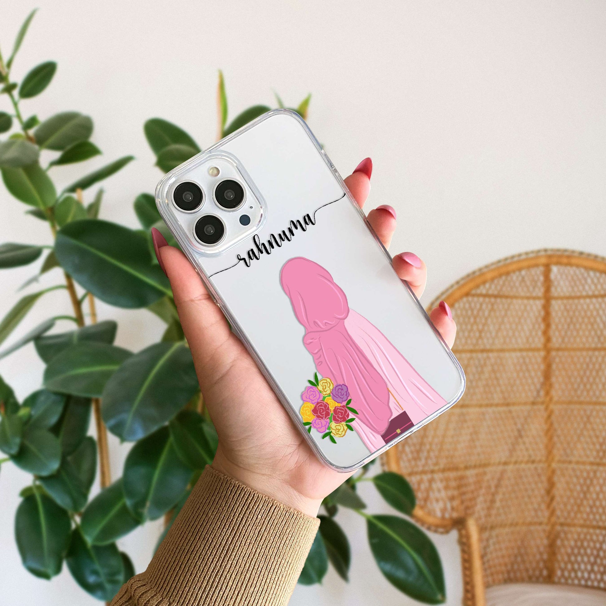 Hijab Girl Holding Flower Custom Name Transparent Silicone Phone Case Design 12