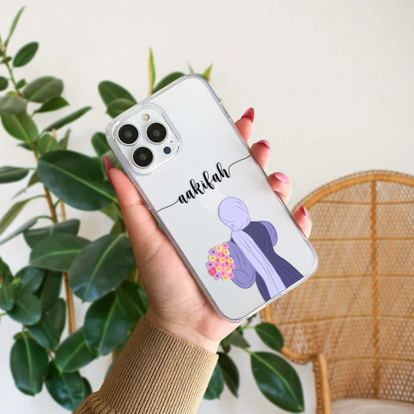 Hijab Girl Holding Flower Custom Name Transparent Silicone Phone Case Design 7