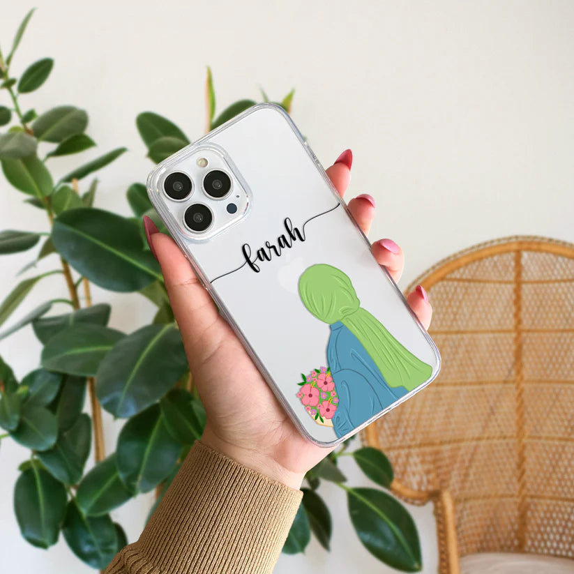 Hijab Girl Holding Flower Custom Name Transparent Silicone Phone Case Design 8