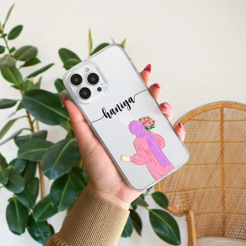 Hijab Girl Holding Flower Custom Name Transparent Silicone Phone Case Design 9