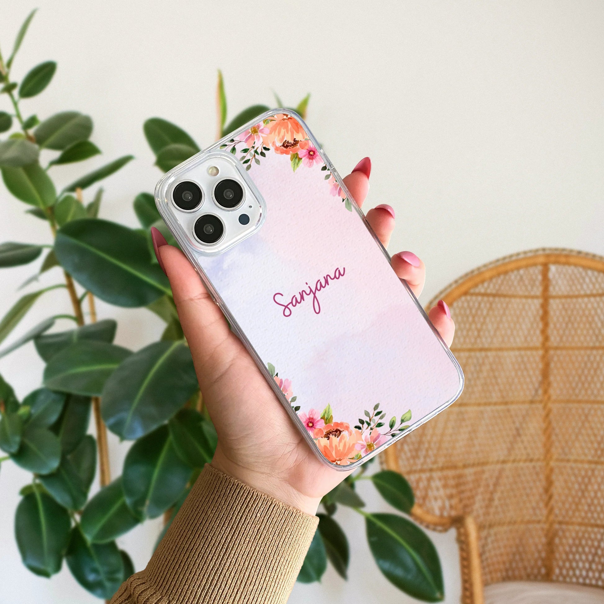 Oil Pastel Floral Customized Name Silicone Phone Case
