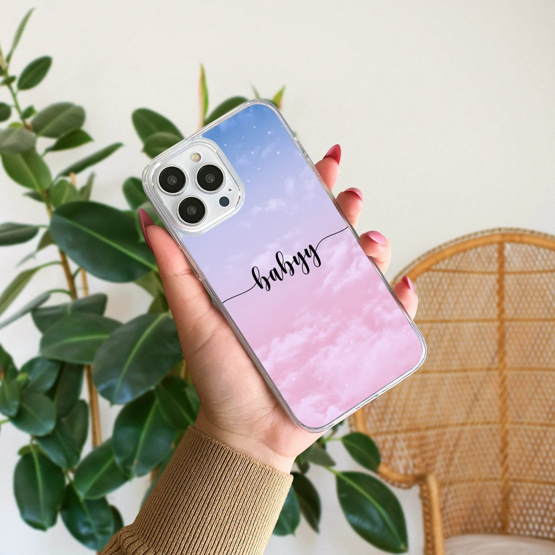 Pink and Blue Clouds Customized Name Silicone Phone Case