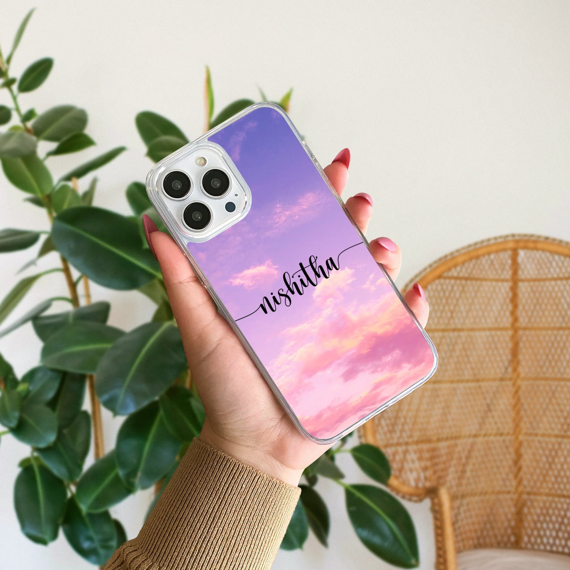Pink and Purple Clouds Customized Name Silicone Phone Case