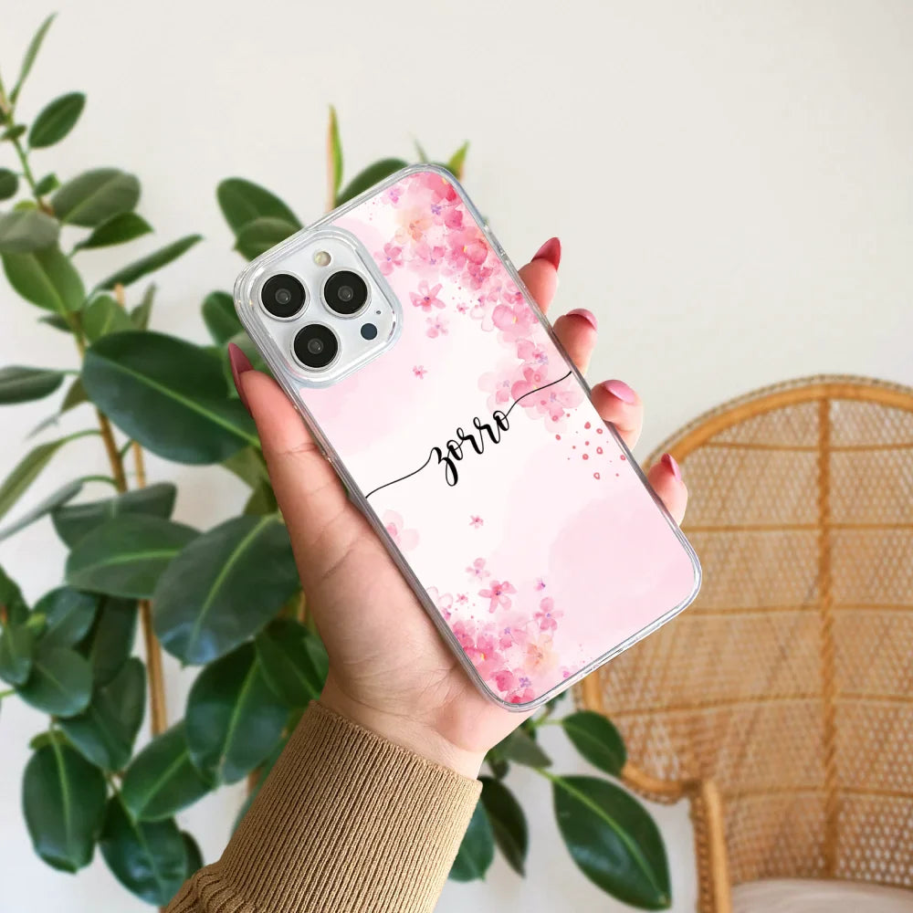 Pink Floral Pattern Customized Name Silicone Phone Case