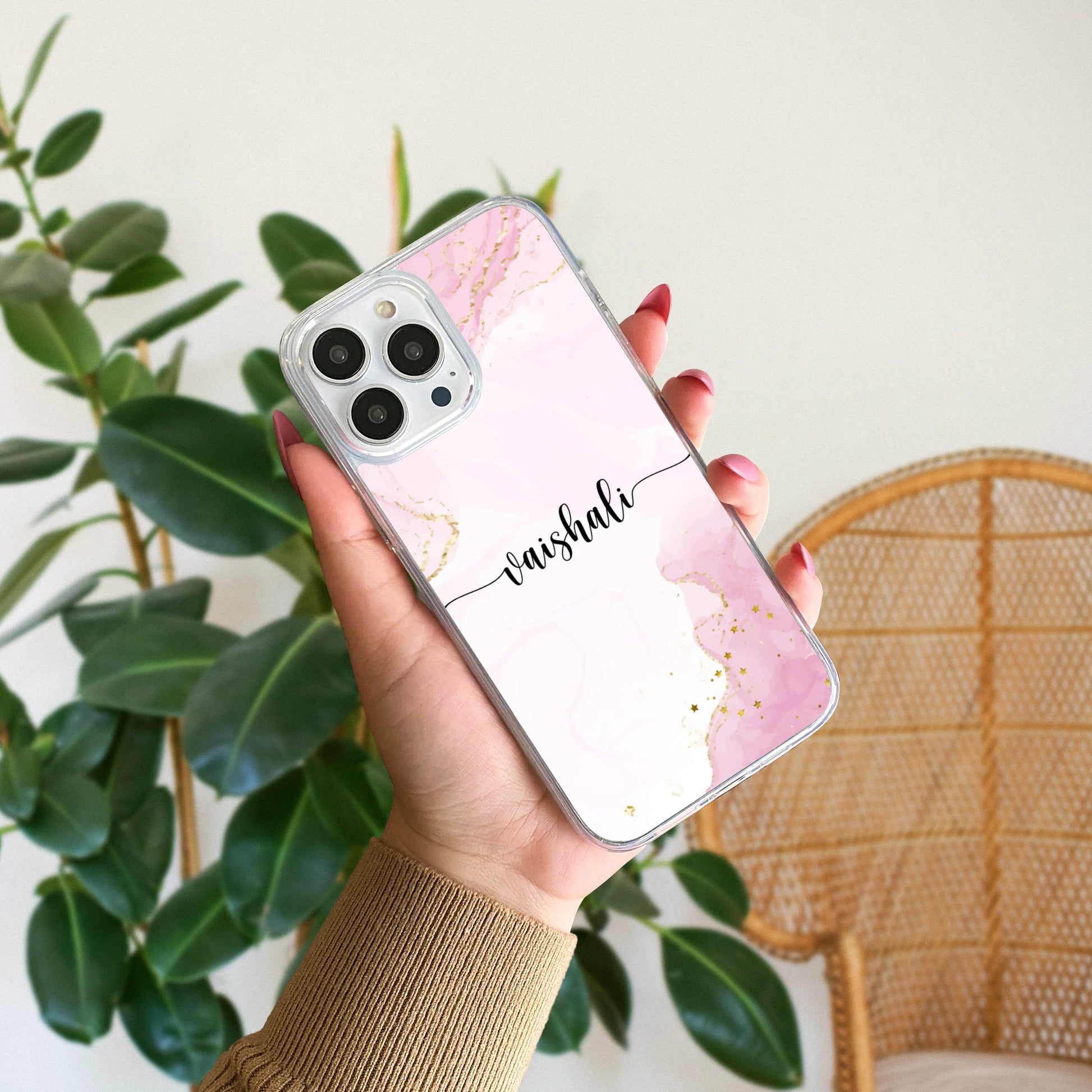 Pink Marble Abstract Customized Name Silicone Phone Case