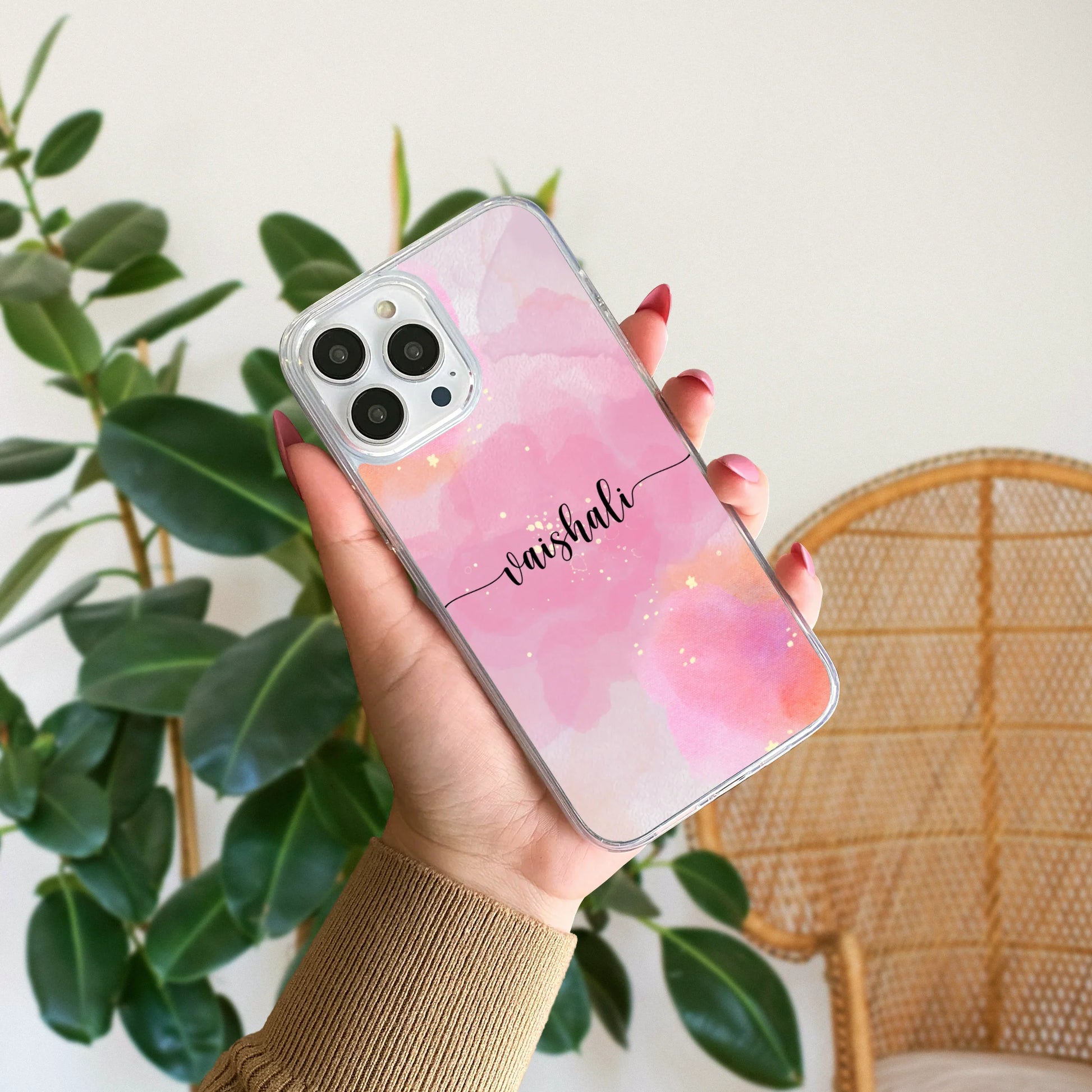 Pink Marble With Golden Dots Customized Name Silicone Phone Case